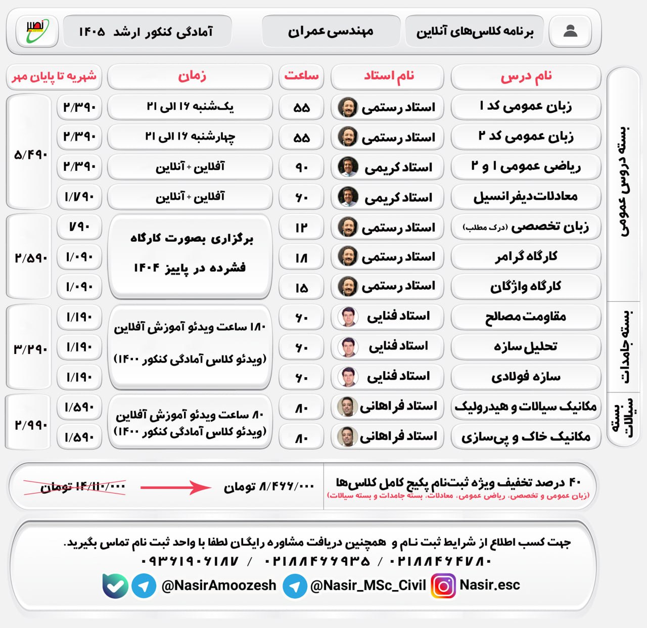 📣 اعلام برنامه کلاسهای #آنلاین و #آفلاین آمادگی آزمون کارشناسیارشد و دکتری مهندسی عمران ۱۴۰۵