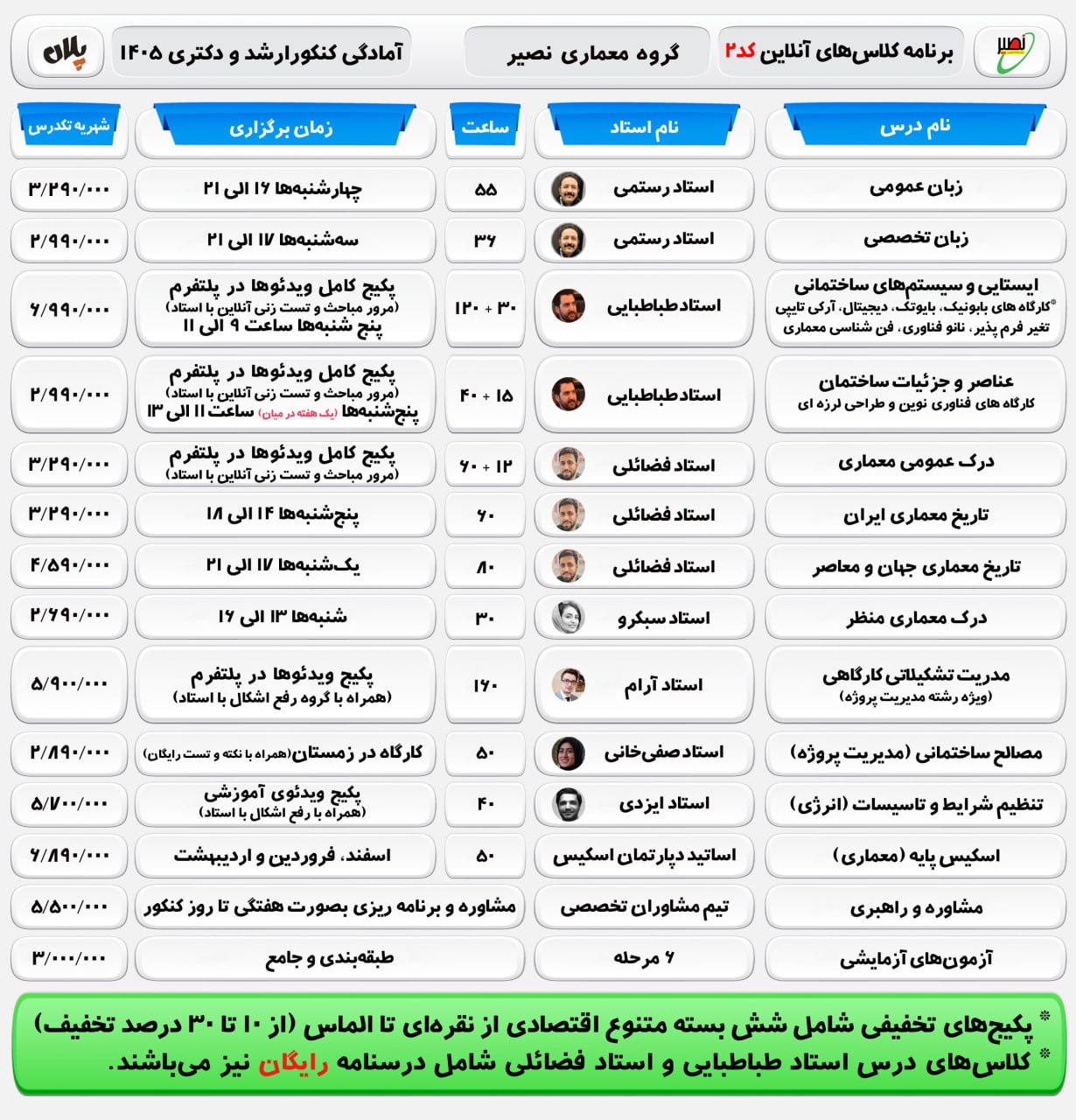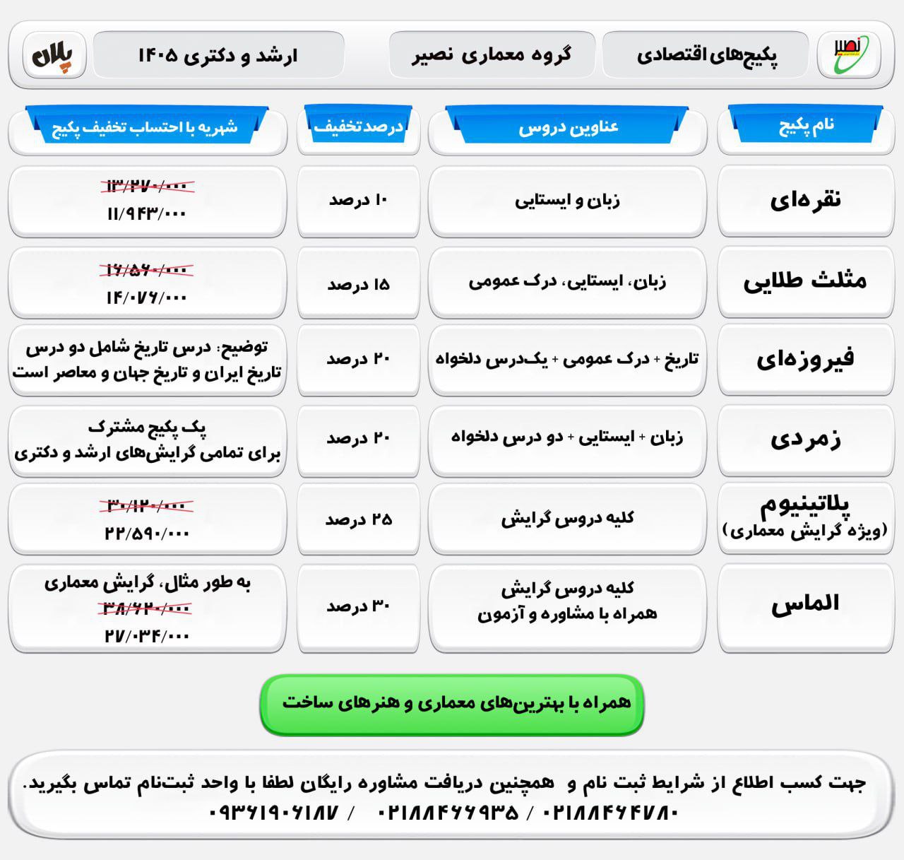 🎁 جزئیات پکیج های اقتصادی کلاسهای #آنلاین آمادگی کنکور ارشد و دكتري مجموعه معماری و هنرهای ساخت ۱۴۰۵