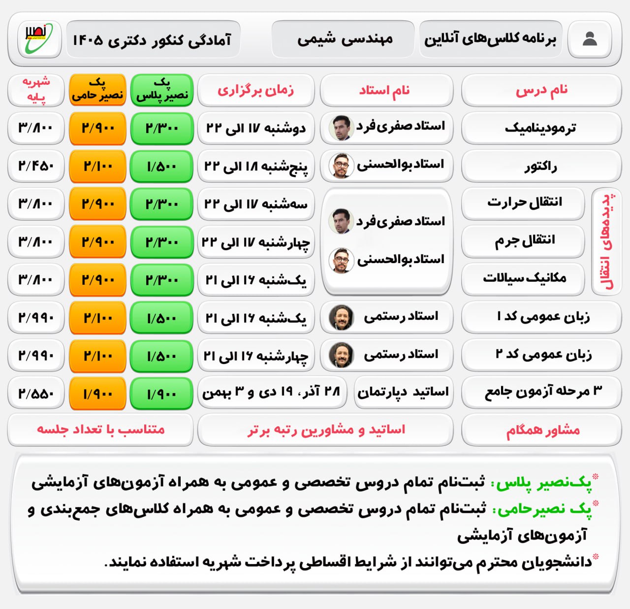 📣 اعلام برنامه کلاسهای #آنلاین آمادگی کنکور دکتری مهندسی شیمی ۱۴۰۵