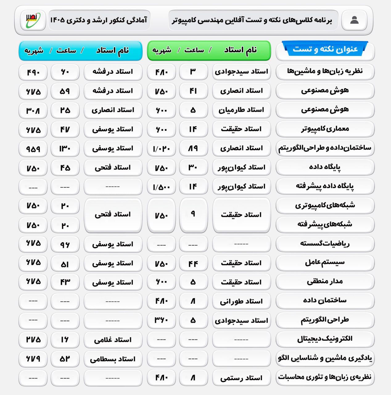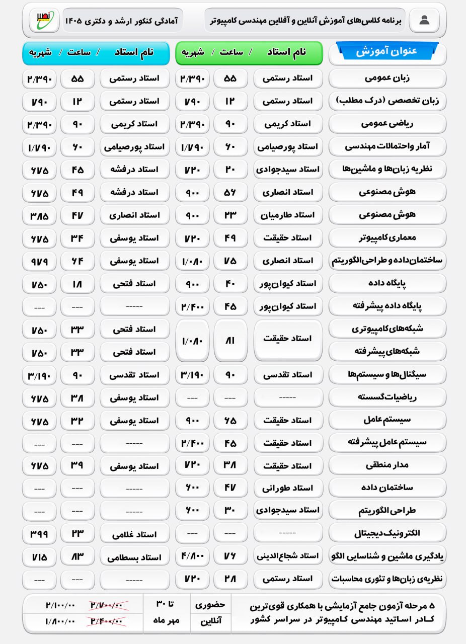 📣 اعلام برنامه کلاسهای آموزش #آنلاین و #آفلاین آمادگی کنکور ارشد و دكتري مهندسی کامپیوتر ۱۴۰۵